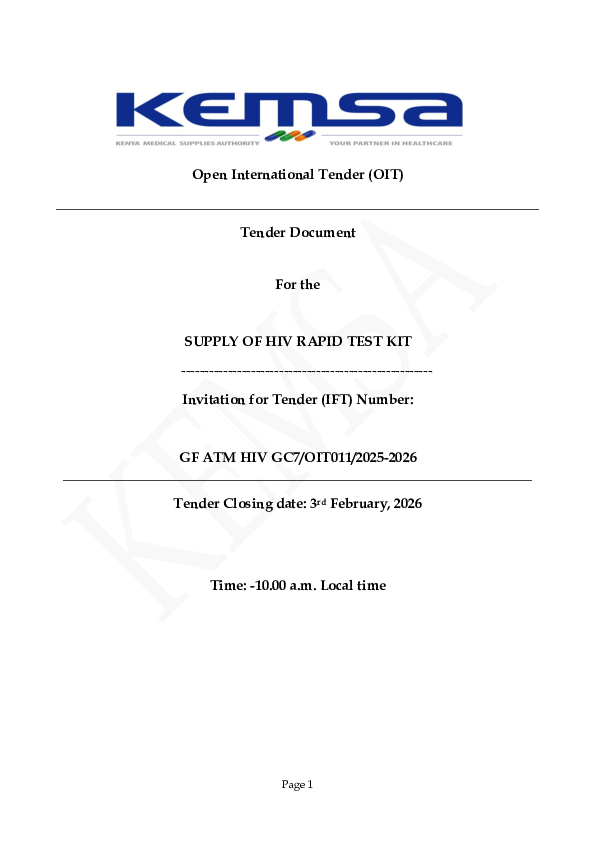 Tender Document For the SUPPLY OF HIV RAPID TEST KIT