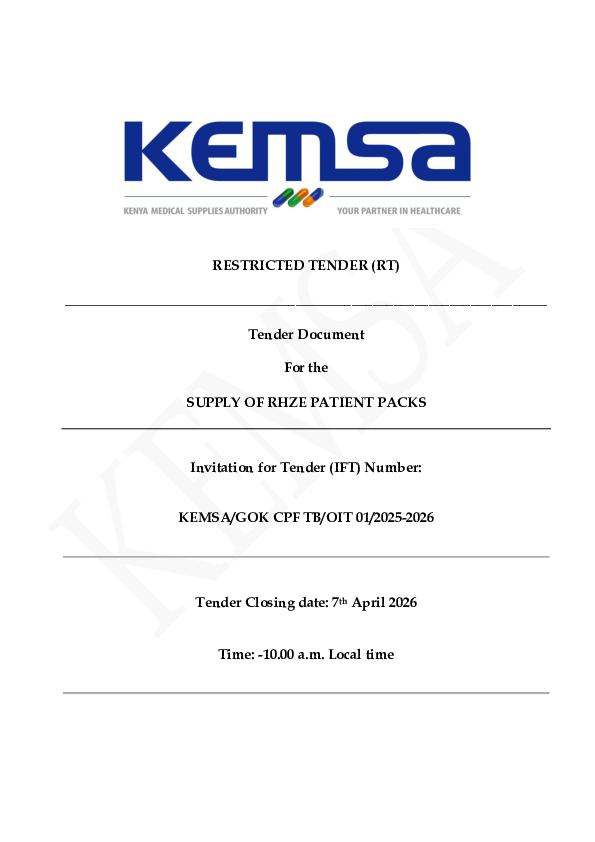 Ref: KEMSA/GOK CPF TB/OIT 01/2025-2026