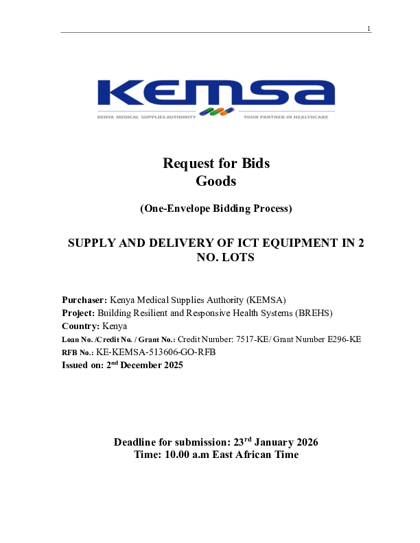 Ref: SUPPLY AND DELIVERY OF ICT EQUIPMENT IN 2 NO. LOTS