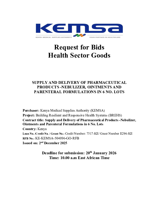 Ref: SUPPLY AND DELIVERY OF PHARMACEUTICAL PRODUCTS -NEBULIZER, OINTMENTS AND PARENTERAL FORMULATIONS IN 6 NO. LOTS