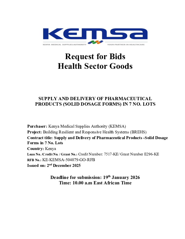Ref: SUPPLY AND DELIVERY OF PHARMACEUTICAL PRODUCTS (SOLID DOSAGE FORMS) IN 7 NO. LOTS